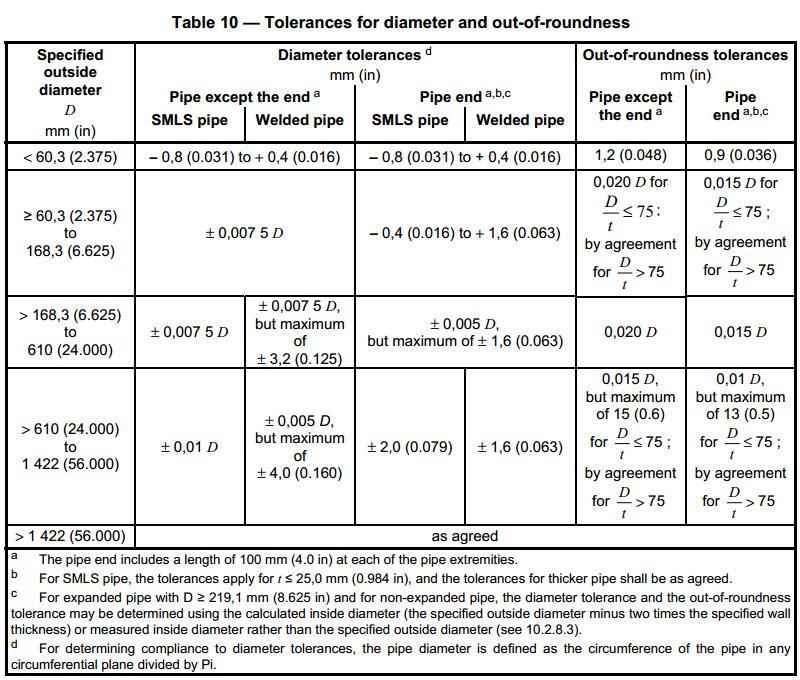 API 5L Pipe Sizes and Tolerances