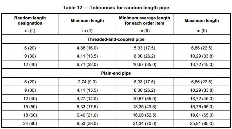a. Random length shall be delivered as below table 12.